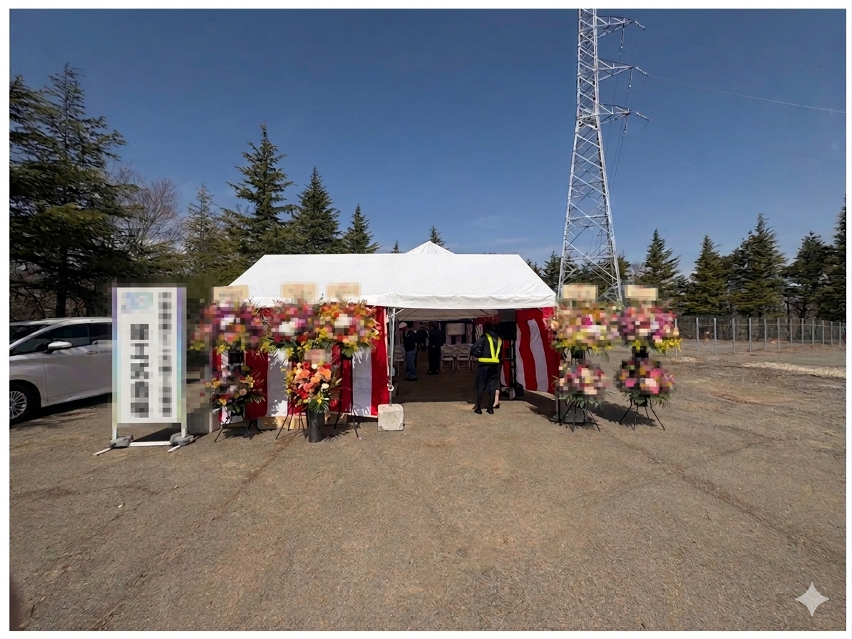 2026/03(令和8年4月)福島県福島市松川町地内にて、竣工式典及びテープカット式典の会場設営業務を行いました。
